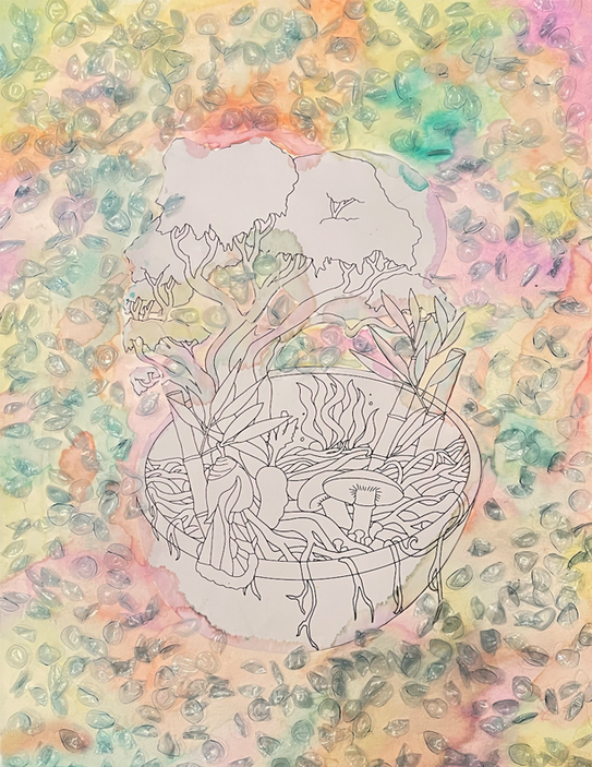 earth and how we are figuratively a part of the same garden and share the same resources. The shatter throughout the image is meant to represent the disconnect between society. While we are in the same garden we are disconnected from one another and I wanted to create an image that can depict that idea. Over the years society has gotten so disconnected from one another especially after the COVID 19 pandemic. Many of society has not been able to recover and they now deal with anxiety around being with others. I see this disconnect hugely in school especially in the classrooms, so many of my peers suffer from social anxiety and have a hard time creating friends. Even when we are put into groups many rarely speak. Despite us being in the same garden we couldn’t be further apart.